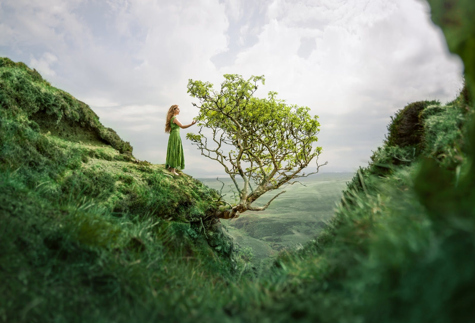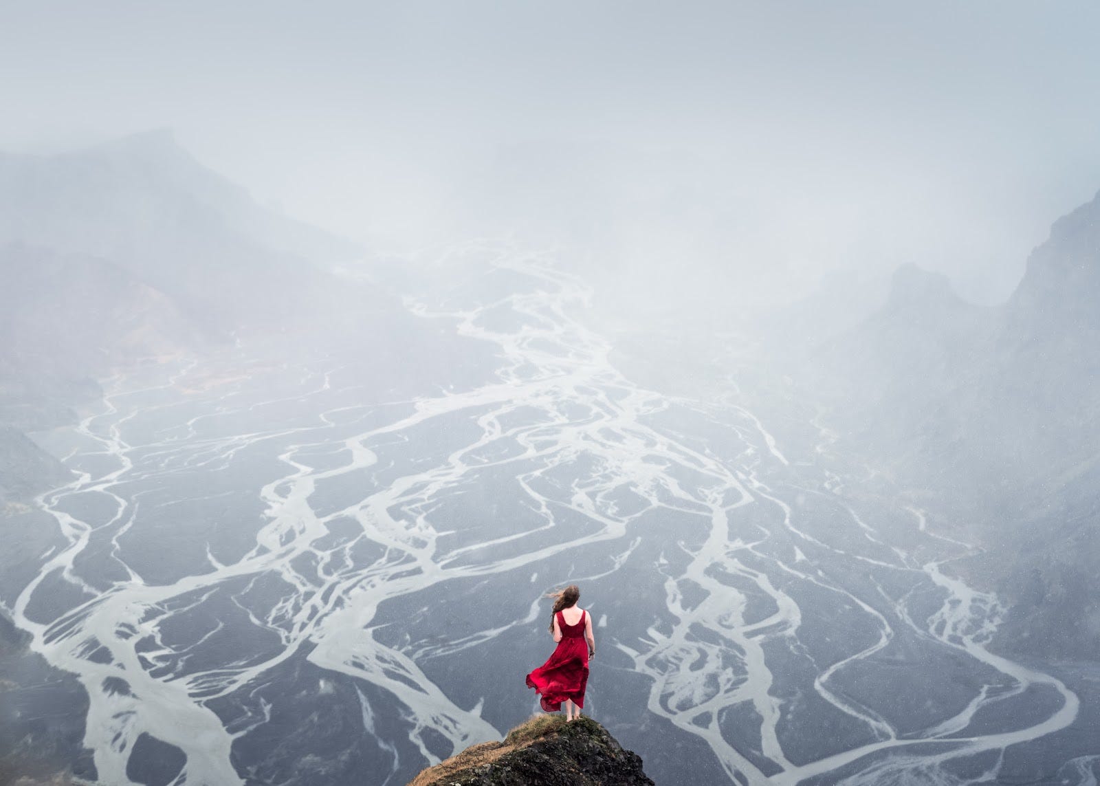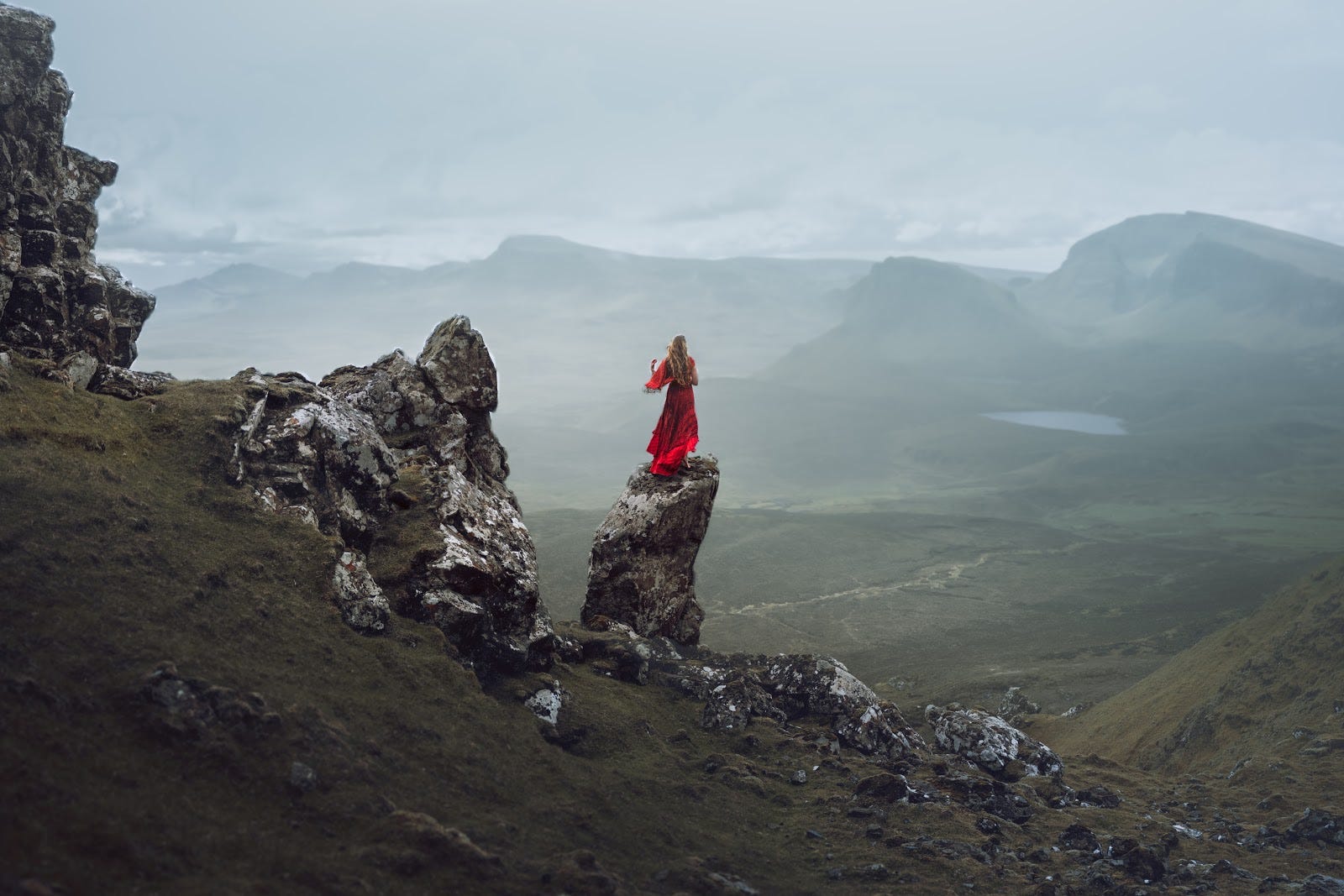 When taking in a location, I like to find a place where there’s an object — whether it’s a tree or a rock — that stands out within a scene. I’ll instantly envision myself interacting with that object somehow, standing next to it or sitting on it, and can see the photograph in my head. Even if there’s nothing there except a beautiful backdrop, I can become the point of interest by incorporating myself within the photo. It gives a focus for the emotion I’m feeling. A frame for what I’m seeing.