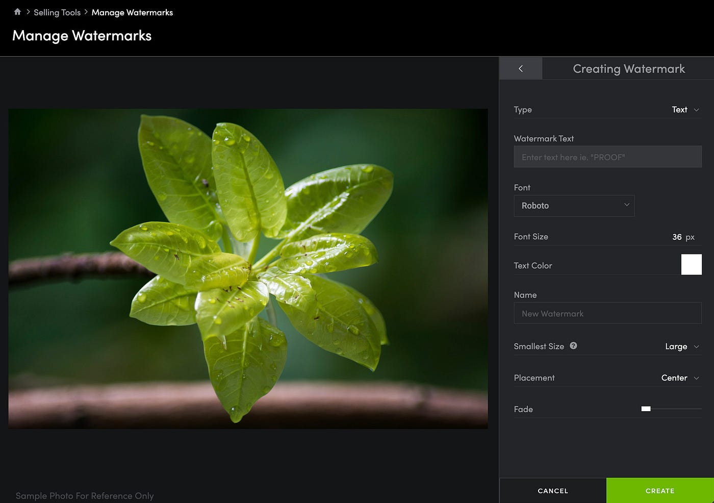 • For those accounts who have access to watermarking photos, the watermark feature is now accessible right in the navigation bar tab under Selling Tools.